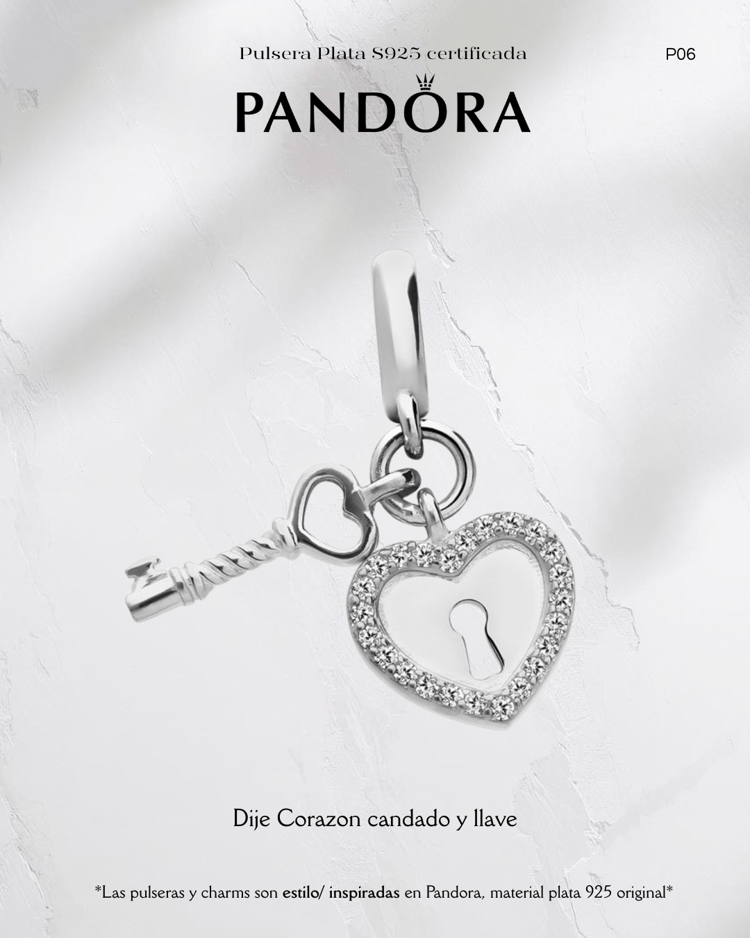 Charm estilo Pandora Corazon con Candado , elaborado en plata 925 con acabados finos y diseño elegante. Ideal para personalizar tu pulsera con un toque único, significativo y moderno. Compatible con pulseras estilo Pandora.