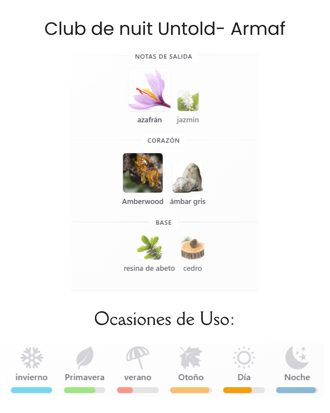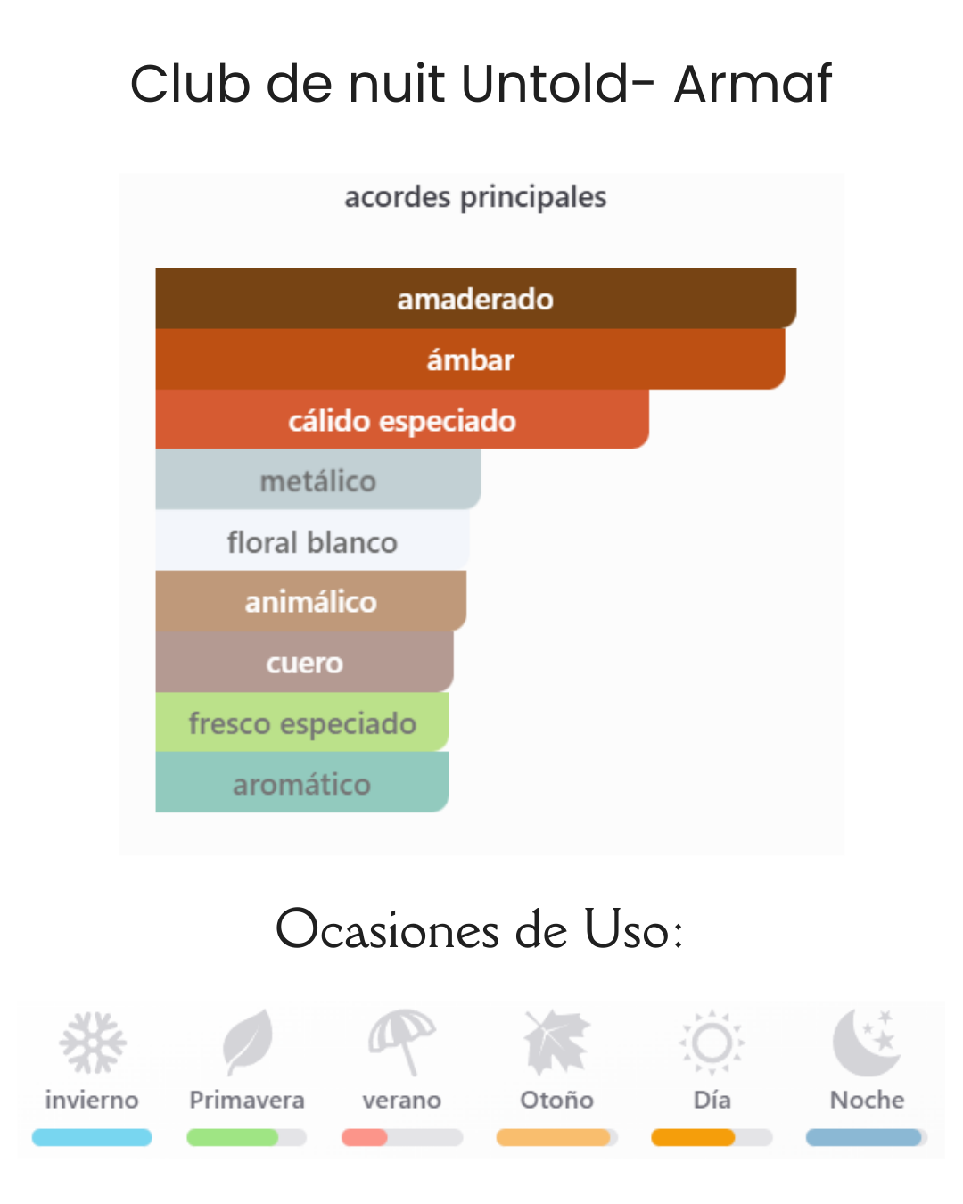 Acordes principales: ambarado, ambar, calido especiado