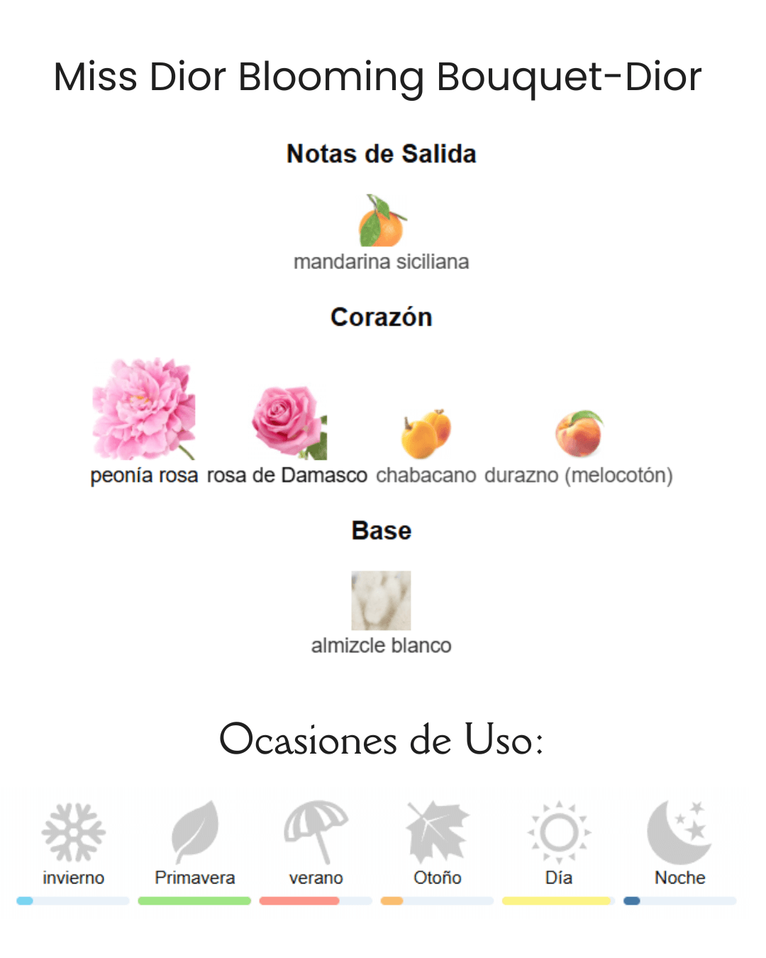 Recomendaciones de uso: Primavera, verano. Dia