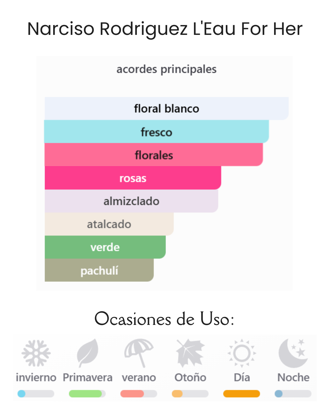 Ocasiones de uso: Primavera, verano. Dia