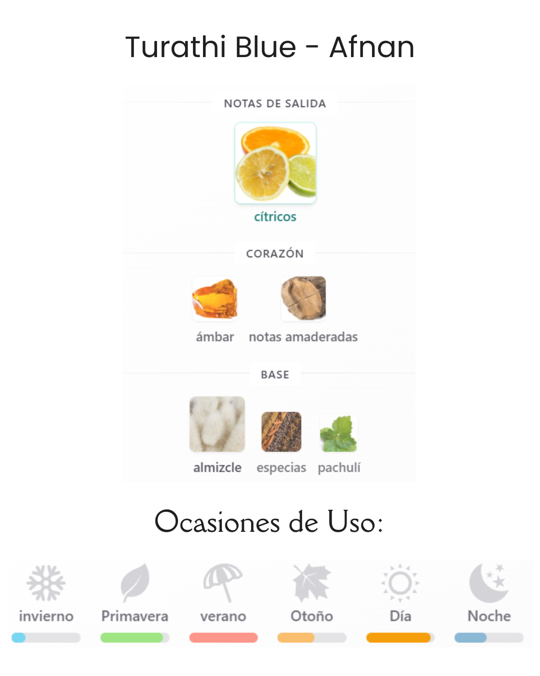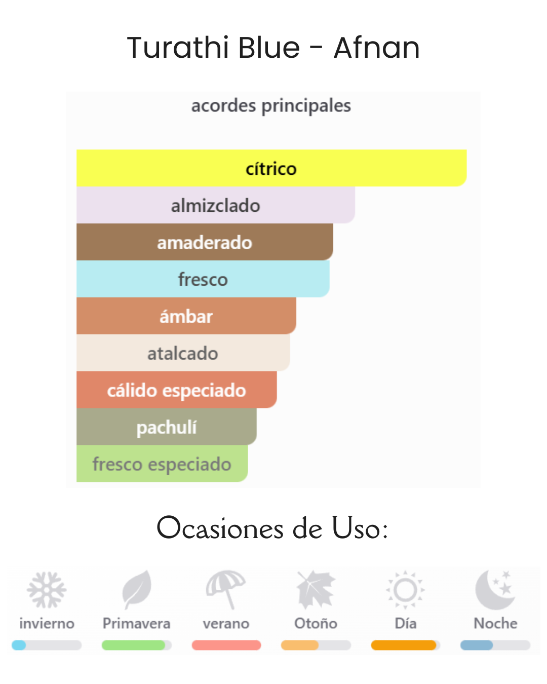 Decant Turathi Blue de Afnan es una fragancia de la familia olfativa Aromática Acuática para Hombres. Turathi Blue se lanzó en 2021. La Nariz detrás de esta fragrancia es Imran Fazlani. La Nota de Salida es cítricos; las Notas de Corazón son ámbar y notas amaderadas; las Notas de Fondo son almizcle, especias y pachulí.