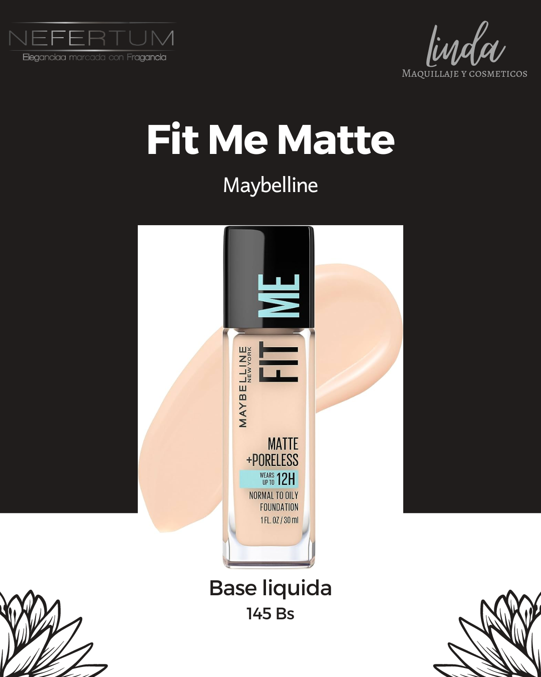 Maquillaje facial de base de maquillaje Fit Me® Matte + Poreless. Esta base de maquillaje ligera matifica y afina los poros para un acabado natural e impecable.